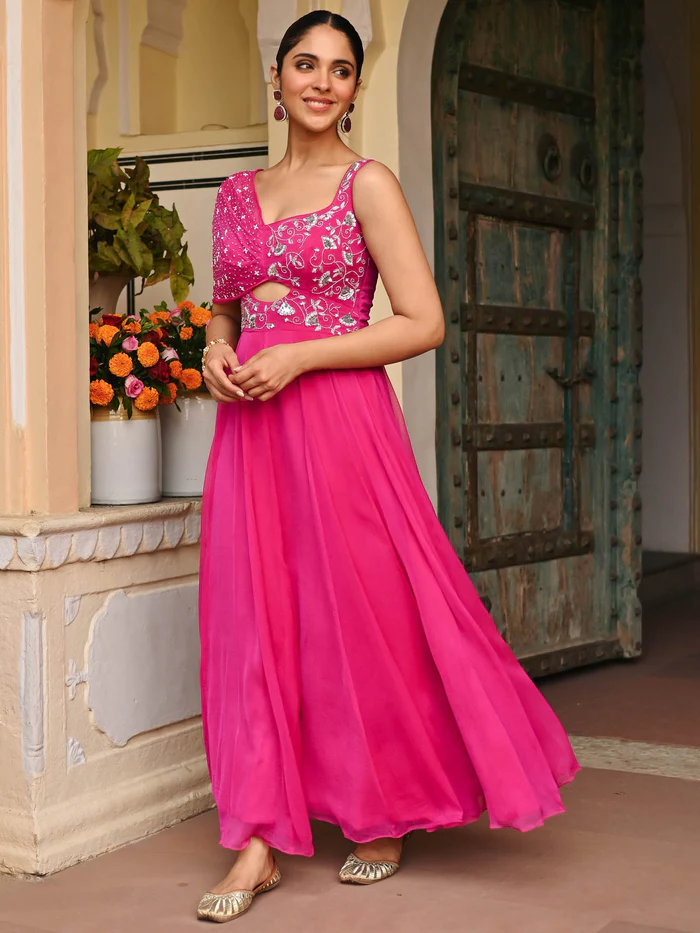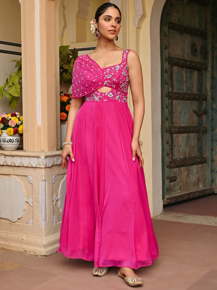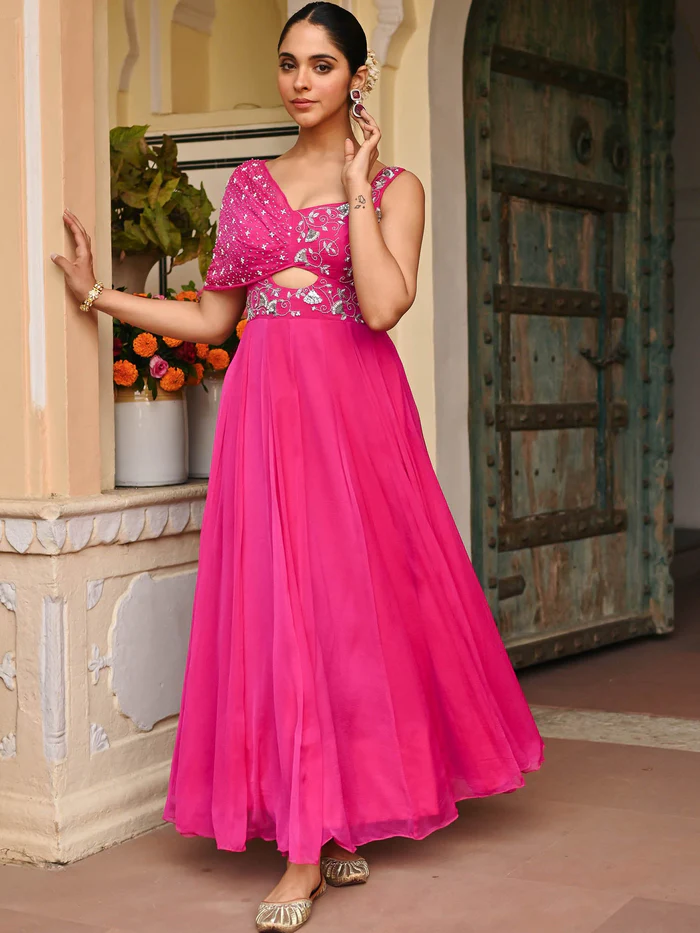 Pink Chiffon Handwork Gown